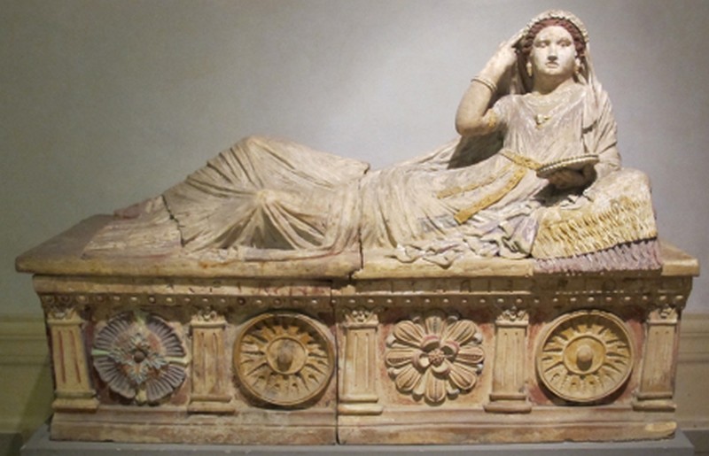 - Museo etrusco Chiusi, Urna di terracotta con figura femminile recumbente (II secolo a.C)