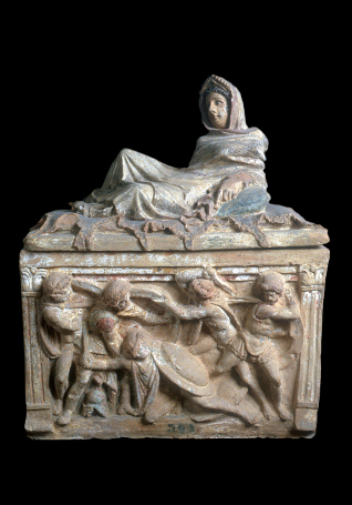 - Museo etrusco Chiusi, Urna di terracotta con figura femminile recumbente (II secolo a.C)