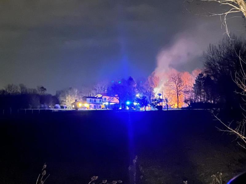 Oltre a questa rimessa, sono andati in fiamme un trattore e una vettura. Non si registrano danni a persone e la casa non sembra essere stata intaccata dalle fiamme. Il fatto è avvenuto poco prima delle 20, quando i residenti delle vicine Staffoli e Galleno hanno sentito un boato.