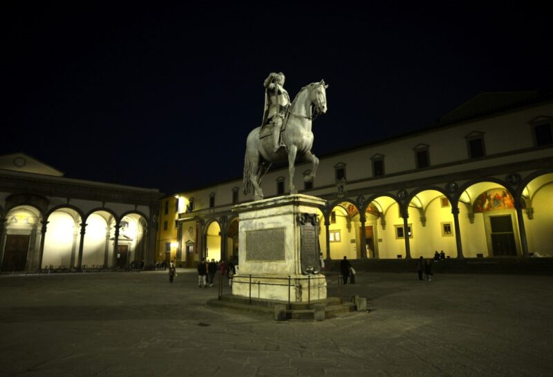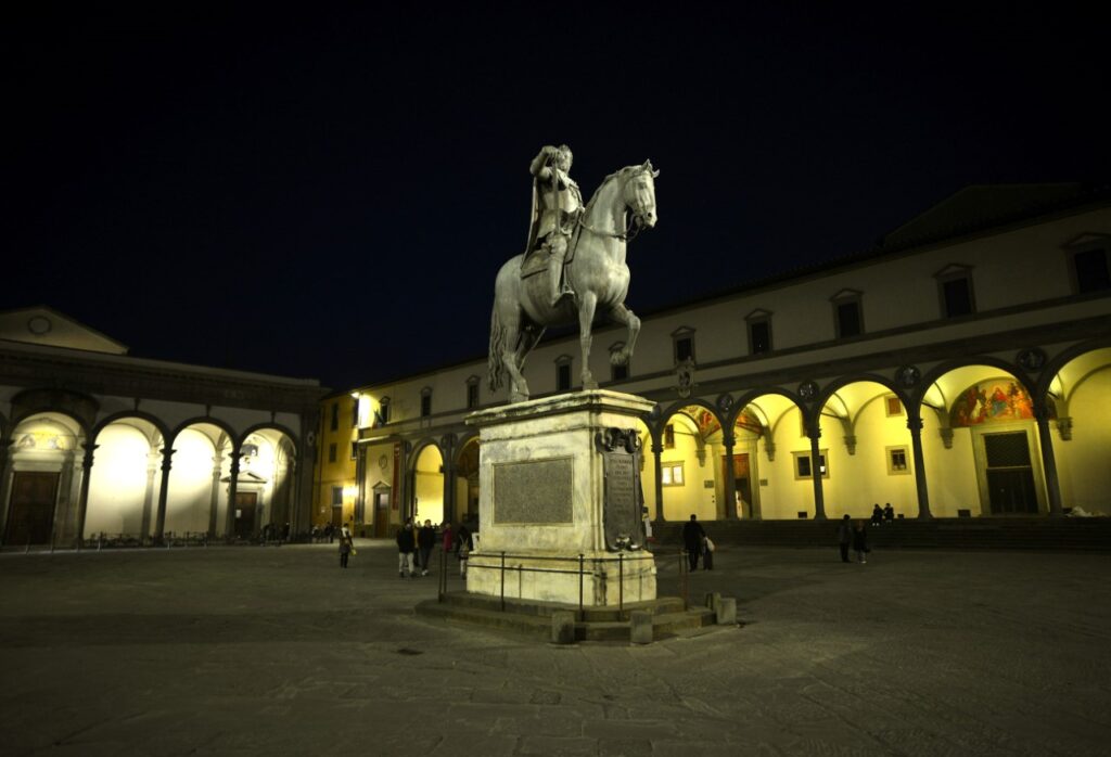 Per la Giornata internazionale della donna anche il Loggiato dell’Istituto degli Innocenti, insieme alle porte storiche di Firenze, si è tinto di giallo. La speciale illuminazione, iniziativa del Comune di Firenze e realizzata da Firenze Smart-Silfi spa, durerà tutta la notte.