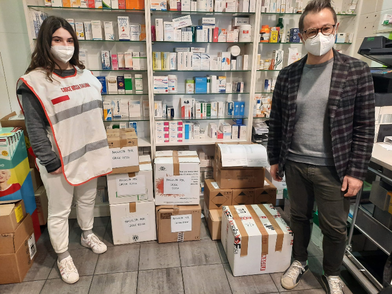 Sia nella farmacia di via dei Cappuccini che in quella presso il Centro Commerciale, sono organizzati due punti di raccolta nei quali i cittadini possono acquistare e donare uno o più prodotti (farmaci da banco) che saranno inviati dalla Croce Rossa Italiana alle popolazioni ucraine che necessitano di immediata assistenza sanitaria.
