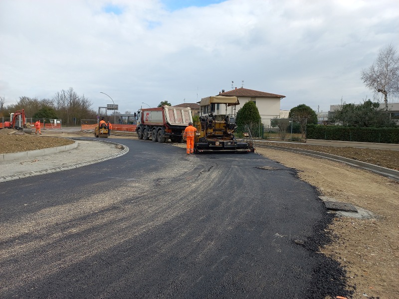 Nelle ultime settimane i lavori sono proseguiti come da cronoprogramma: una volta realizzate le modifiche su via Cherubini, conclusa la realizzazione dei sottoservizi impiantistici e dei sottofondi, per i quali sono stati attesi i tempi tecnici per il consolidamento, che hanno poi permesso la stesa del bitume nella parte di rotatoria realizzata.