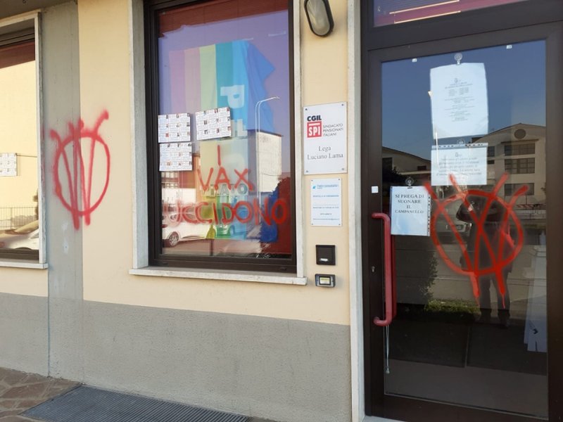 “Voglio esprimere la mia ferma condanna per questo episodio; il tenore delle scritte lo rende associabile a posizioni no vax, ma queste espressioni travalicano ogni posizione, sono solo violenza verbale. Piena solidarietà al sindacato davanti a questi atti vigliacchi i cui responsabili spero vengano rapidamente identificati”.