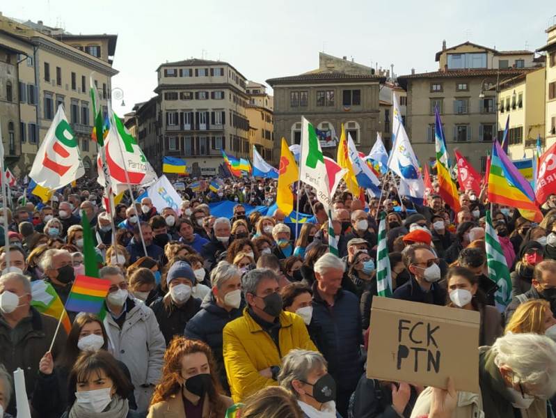 Tantissime le adesioni all'evento, che sta riunendo l'Italia e l'Europa nel capoluogo toscano, nella manifestazione promossa dal sindaco Dario Nardella e presidente di Eurocities. Altissimo il numero dei partecipanti: si parla di circa 20mila persone presenti in piazza Santa Croce e di 100 città collegate, per dire no al conflitto in Ucraina. Tra gli interventi previsti in presenza o videomessaggio, diversi sindaci dell'Europa e il collegamento del presidente dell'Ucraina Volodymyr Zelensky.