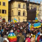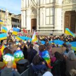 La manifestazione "Cities stand with Ukraine" aperta con le note del Maggio Musicale Fiorentino si chiude con quelle di John Lennon, con la celebre Imagine, interpretate da un gruppo di star internazionali per l'Unicef in video. La folla si è unita al canto, mentre in alto sventolavano le bandiere dell'Ucraina e della pace, come quella alzata dal sindaco di Firenze Nardella.