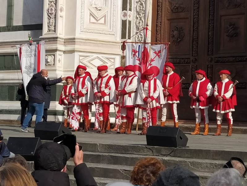 Intanto dalla basilica di Santa Croce risuona l'Ave Verum Corpus di Mozart, eseguito dall'Orchestra e dal Coro del Maggio Musicale Fiorentino, mentre dal palco sta conducendo gli interventi Camila Raznovich.