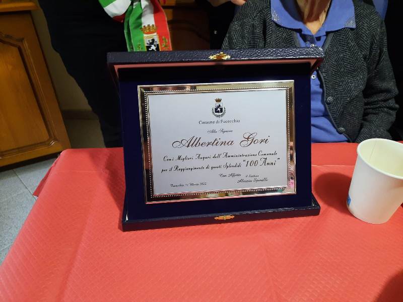 È stata la vicesindaco Emma Donnini a portare gli auguri dell'amministrazione comunale di Fucecchio a Albertina Gori che ieri, venerdì 11 marzo, ha raggiunto il traguardo delle cento candeline.