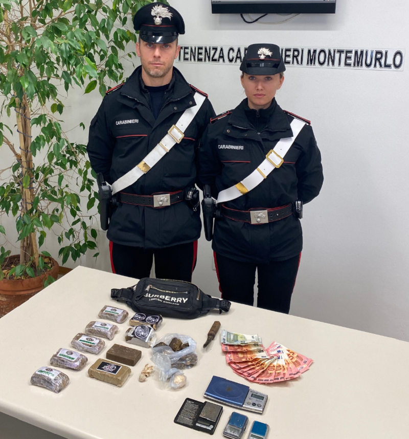 I militari, nel corso della perquisizione cui lo hanno sottoposto martedì scorso nella frazione Bagnolo, poi estesa alla sua abitazione e relative pertinenze, hanno rinvenuto nella sua disponibilità quasi un chilo di hashish suddiviso in dosi e panetti, 6 grammi di cocaina, diverse bilancine di precisione, materiale per il confezionamento delle dosi, telefoni cellulari, nonché coltellini intrisi della predetta sostanza, denaro contante provento dell’illecita attività.