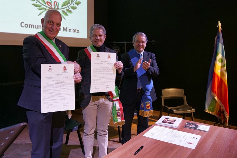 Siglato dai due sindaci Simone Giglioli e Giorgio Sagrini il patto d'amicizia tra il Comune di San Miniato e quello di Casola Valsenio. La delegazione della Città della Rocca, composta, oltra al sindaco, dal consigliere delegato ai gemellaggi Michele Fiaschi e dal vice presidente della Pro Loco Matteo Squicciarini, è stata accolta domenica 13 marzo all'interno della "Festa del tartufo primaverile" organizzata nella città romagnola. La cerimonia si è svolta nella sala “G. Spadolini-Vecchi Magazzini” a Casola, ed è stata nel ricordo del casolano Stanislao Costa, soprannominato Stagnàza, il pioniere che stimolò in San Miniato una curiosità sempre crescente verso il tartufo e la sua ricerca, contribuendo così a rendere la Città della Rocca il punto di riferimento che è oggi, e divenendo il pilastro su cui si fonda il documento siglato tra le due città.