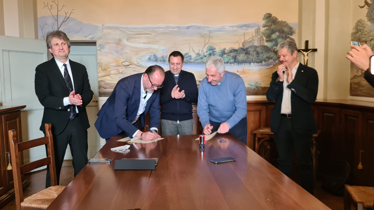 Questa mattina, presso la Curia vescovile di San Miniato, alla presenza del vescovo Monsignor Andrea Migliavacca, del presidente della Provincia Massimiliano Angori e del sindaco di San Miniato Simone Giglioli, è stato sottoscritto un protocollo d'intesa tra Fondazione Charlie Onlus e Caritas diocesana di San Miniato. A firmarlo sono stati il presidente di Charlie Angelo Migliarini e il direttore della Caritas don Armando Zappolini.