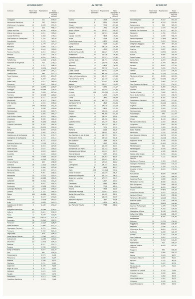 La Toscana si trova al 7° posto in Italia come numerosità di casi (comprensivi di residenti e non residenti), con circa 25.100 casi per 100.000 abitanti (media italiana circa 23.169 x100.000, dato di ieri). Le province di notifica con il tasso più alto sono Firenze con 26.536 casi x100.000 abitanti, Pistoia con 26.167, Prato con 25.401, la più bassa Grosseto con 21.457.