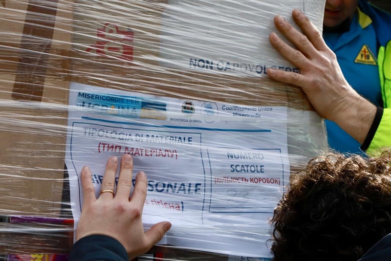 Un corridoio che si è aperto direttamente con il Comune di Leopoli e dove tutti questi aiuti andranno, smistati tra i centri di accoglienza dell’arcivescovo di Leopoli e quelli dell’accoglienza municipale. Ventiquattro pancali di derrate alimentari, materiale di ogni genere come coperte, materassini, tanti prodotti per bambini, igiene personale, farmaci e abbigliamento. Una macchina di solidarietà che non si è mai fermata e che come dicono chi la vive ogni giorno ‘ogni emergenza resta attaccata alle mani’.Alla grande risposta di un territorio che non si volta dall’altra parte e che non lo ha mai fatto, c’erano gli assessori del Comune di Empoli Valentina Torrini e Massimo Marconcini; il sindaco di Vinci, Giuseppe Torchia; Gionata Fatichenti, direttore dell’emergenza nazionale e responsabile nazionale delle Misericordie; Federico Chesi, protezione civile; Federico Berni e i volontari.«Riempie il cuore vedere la grande quantità di prodotti che sono stati donati dal nostro territorio. Aiutare le persone che soffrono nel Mondo, accoglierle e tendere loro una mano è nostro dovere, sempre. Grazie alla Misericordia di Empoli e a tutti coloro che si sono impegnati nella raccolta e nella consegna», il commento di Valentina Torrini, a cui si aggiungono le parole di Marconcini: «un sentito ringraziamento ai volontari della Misericordia che come sempre si fanno trovare pronti, ai cittadini che hanno dato i loro aiuti e a Berni che ha fornito questa zona di stoccaggio per far arrivare alla popolazione in guerra i nostri aiuti. Davvero una gran bella cosa