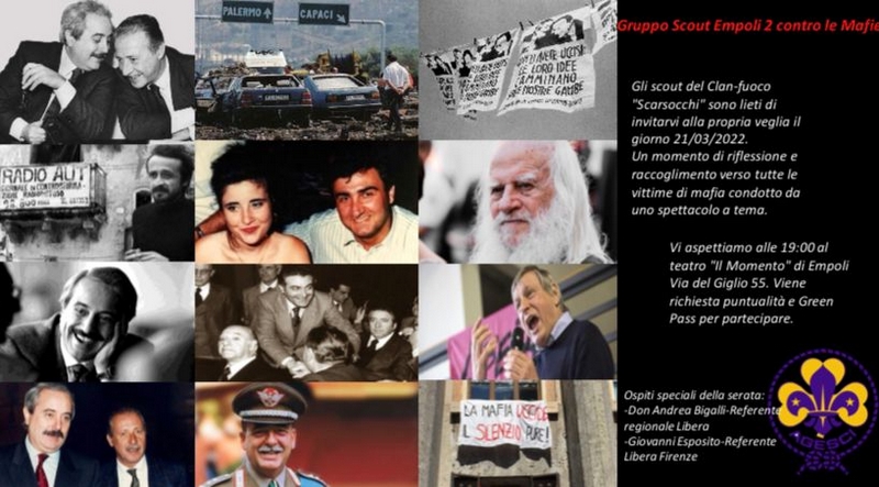 Lunedì 21 marzo, in occasione della giornata della memoria alle vittime di mafia, si terrà una veglia alla Sala il Momento di via del Giglio a Empoli.
