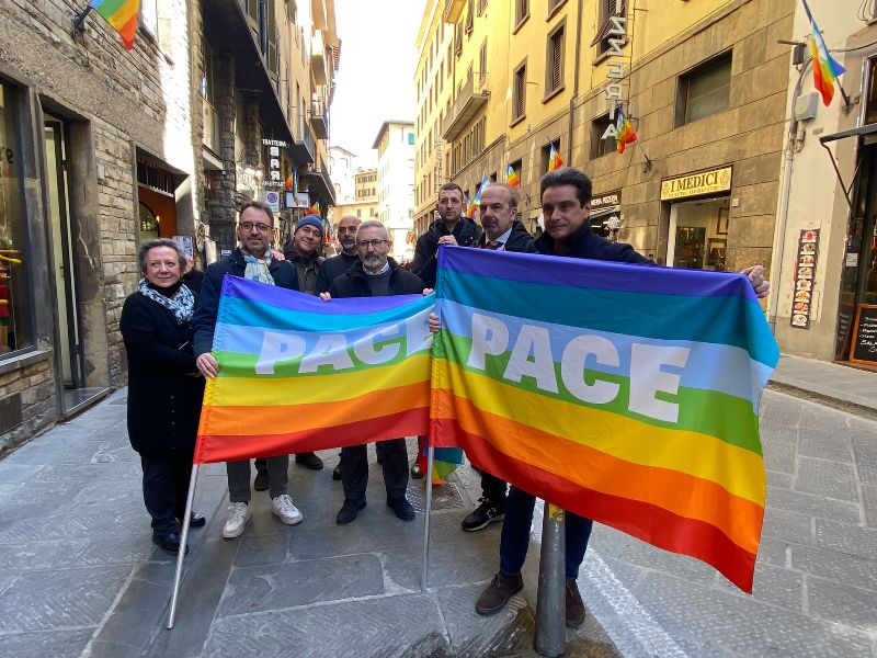 "Un tappeto di bandiere per dire no alla guerra – ha spiegato Tommaso Sabatini Presidente CCN via Guicciardini - ed esprimere a gran voce che vogliamo la pace come principio universale di fratellanza e solidarietà tra popoli e Nazioni".