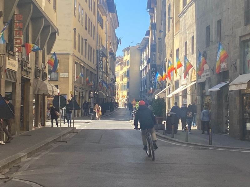 Centinaia le bandiere esposte nei principali luoghi del commercio fiorentino: tante le adesioni all'iniziativa di Confesercenti "Coloriamo le strade"