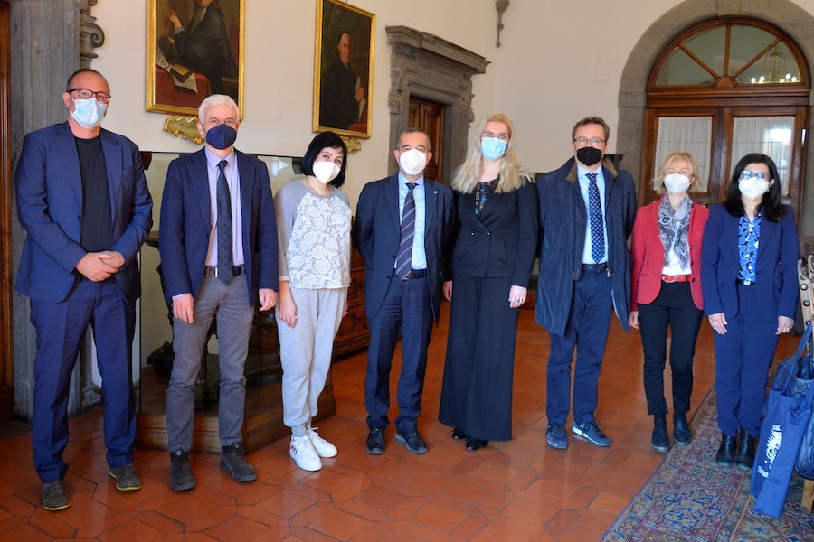 Sono arrivate all’Università di Pisa le prime due docenti ucraine accolte con il programma Visiting fellow, che permetterà loro di lavorare e fare ricerca nell’Ateneo pisano per un anno. Le due professoresse - Yelena Gregorian e Sibilla Buletsa - sono state accolte dal rettore Paolo Mancarella nella Sala Mappamondi del rettorato insieme a Francesco Marcelloni, prorettore per la cooperazione e le relazioni internazionali, Francesco Dal Canto, direttore del dipartimento di Giurisprudenza, le professoresse Enza Pellecchia e Angioletta Sperti del dipartimento di Giurisprudenza, e il professor Ugo Faraguna, coordinatore per l’Internazionalizzazione della Scuola di Medicina.