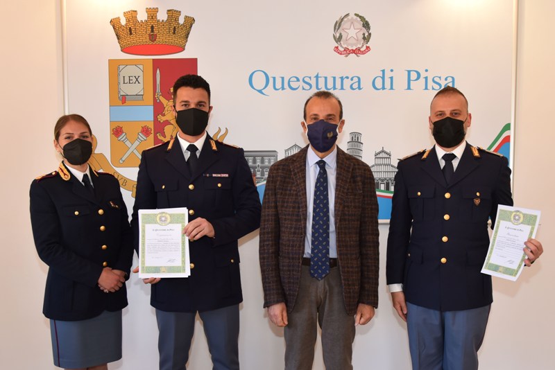 Il questore di Pisa Gaetano Bonaccorso ha consegnato agli agenti della polizia della provincia dei ringraziamenti per alcuni membri che si sono distinti per dedizione e professionalità.