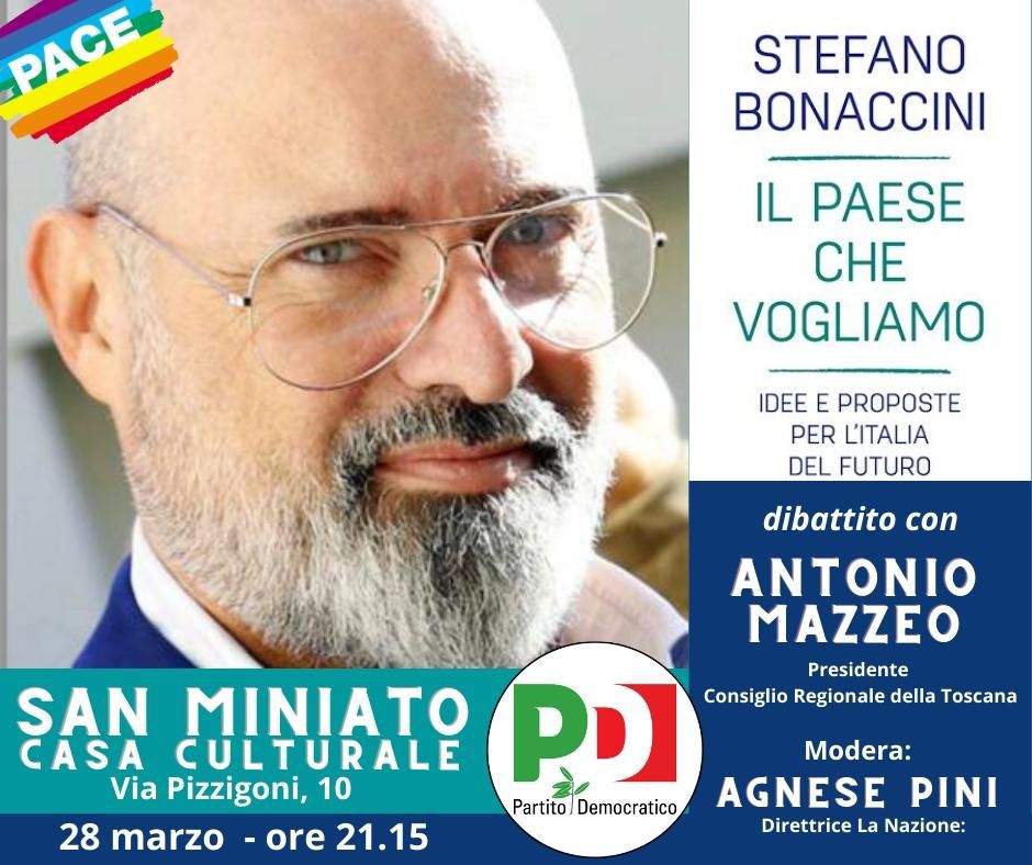 Lunedì 28 marzo il presidente della Regione Emilia-Romagna, Stefano Bonaccini, presenterà a San Miniato Basso il suo ultimo libro ‘Il Paese che vogliamo’.
