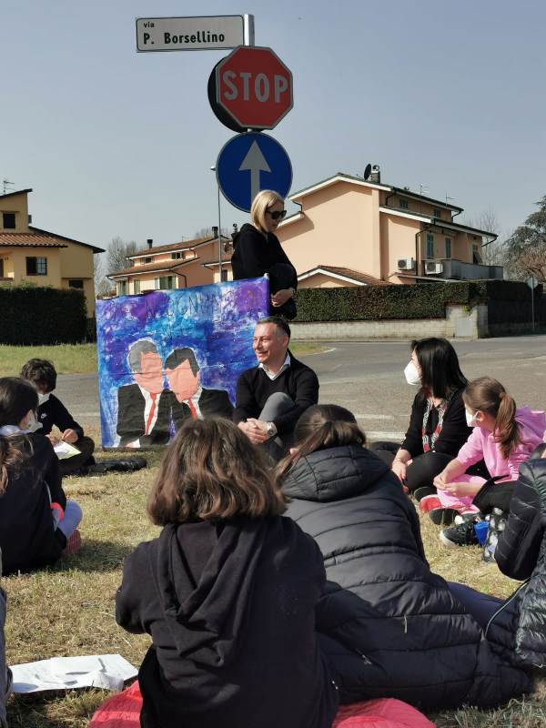 "La mafia si sconfigge non lasciando nessuno indietro e in questo la scuola gioca un ruolo fondamentale per far sì che le organizzazioni malavitose non affondino le radici sul territorio". Sono alcune delle parole che questa mattina Claudio Fiore, nipote di Paolo Borsellino, il magistrato ucciso 30 anni fa nelle tristemente famosa strage di via D'Amelio a Palermo, ha pronunciato di fronte agli alunni della classe 5a E della scuola primaria Carducci di Fucecchio, in una "lezione" molto speciale che si è tenuta all'aperto in uno spazio verde situato proprio in via Paolo Borsellino.