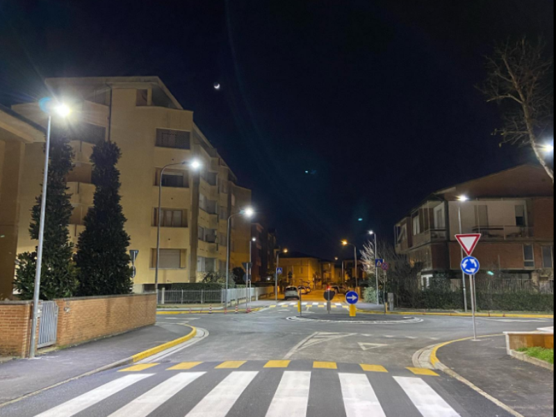 Nel dettaglio, con un investimento di circa 140mila euro (di cui 60mila cofinanziati dalla Regione attraverso un bando) è stata creata una rotatoria che disciplina correttamente gli afflussi dei mezzi sull'incrocio, sono stati realizzati quattro attraversamenti pedonali sulle quattro strade presenti ed è stata installata una nuova illuminazione più efficiente e sicura, sia per i mezzi che per i pedoni.