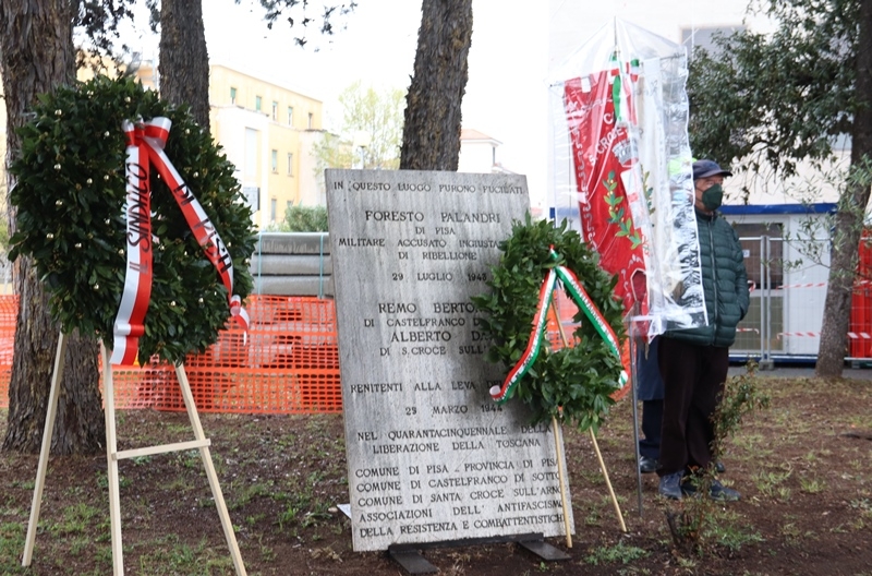 Si è svolta questa mattina, al monumento in via Bonanno davanti al campo Abetone, la cerimonia commemorativa in memoria di Remo Bertoncini e Alberto Dani, due giovani originari di Santa Croce sull’Arno e di Castelfranco di Sotto, che all’alba del 25 marzo 1944, vennero fucilati per mano dei nazi-fascisti per non aver risposto alla chiamata alle armi da parte della Repubblica Sociale Italiana. La cerimonia era organizzata dal Comune di Pisa, Comune di Castelfranco di Sotto, Comune di Santa Croce e Anpi.