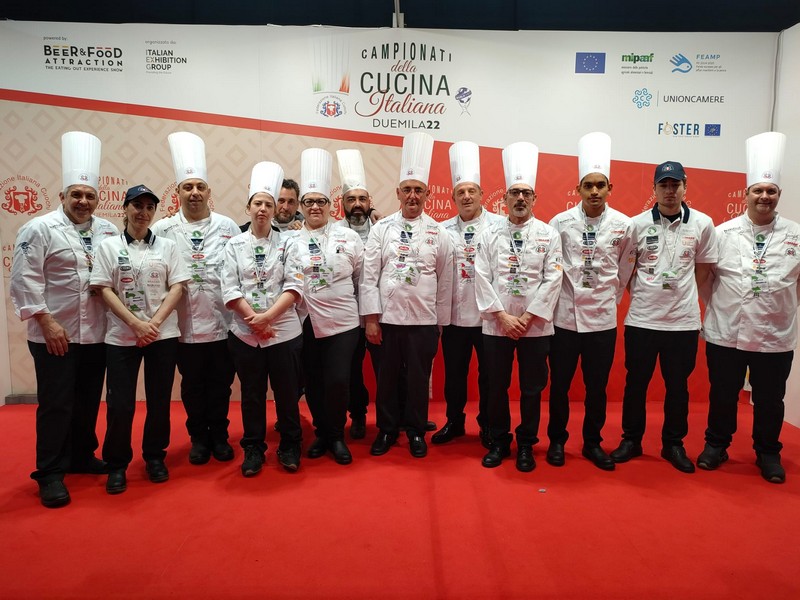 La squadra regionale dei cuochi toscani, composta da Stefano Fantozzi, Veronica Vanni, Giada Ferri, Grazia Monica Briolotta, Leonardo De Candia, Daniele Astarella, Francesco Pannullo, Rocco Fusaro, Rajan Pantani e Bogdan Simiganovchi si è aggiudicata l’Oro nel concorso di cucina calda a squadre.