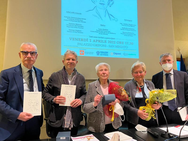 In platea, e accanto all'autore, Raffaella Nativitati sorella di Gianna, Antonio Guicciardini Salini presidente della Fondazione Cassa di Risparmio di San Miniato e 'padrone' di casa, Antonio Mazzeo presidente del Consiglio regionale della Toscana, Simone Giglioli sindaco di San Miniato, il Vescovo Andrea Migliavacca e Laura Baldini, presidente Fondazione Centro Studi Civiltà del Tardo Medioevo e moderatrice dell'incontro.