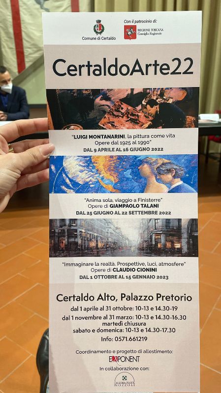 "A Certaldo ospiteremo in mostra le opere di tre artisti che rappresentano il passato, il passato prossimo e il futuro, ma che in realtà sono tutti molto presenti qui con noi". Saranno Luigi Montanarini, Giampaolo Talani e Claudio Cionini i tre artisti di cui Francesca Parri (per ‘Exponent’ cura cordinamento e progetto di allestimento) parla a palazzo del Pegaso, illustrando "CertaldoArte22", il cartellone delle mostre che per tutto l’anno accoglierà i visitatori di Palazzo Pretorio, a Certaldo alto. L’iniziativa è stata presentata questa mattina, martedì 5 aprile in Consiglio regionale.