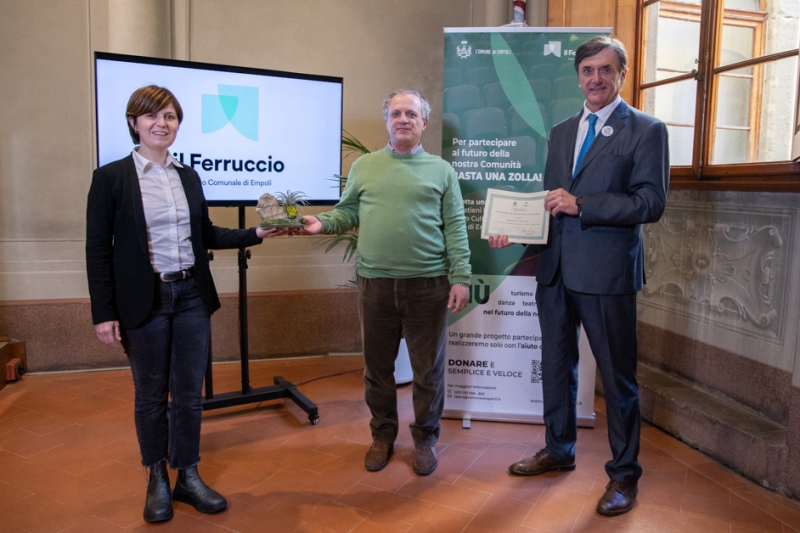 Prosegue la consegna degli attestati di riconoscimento ai nuovi donatori della campagna di raccolta fondi ‘Adotta una zolla’ a supporto della realizzazione del Teatro comunale Il Ferruccio di Empoli. Sono stati ricevuti dal sindaco Brenda Barnini e dal presidente del Comitato Amici del Teatro il Ferruccio, Alessandro Torcini, nella sala consiliare di Via del Papa, Roberto Bagnoli e Massimo Giannoni. La speranza della realizzazione del Teatro comunale è sempre nelle sensibilità dei cittadini, che stanno rispondendo numerosi alla campagna di raccolta fondi.