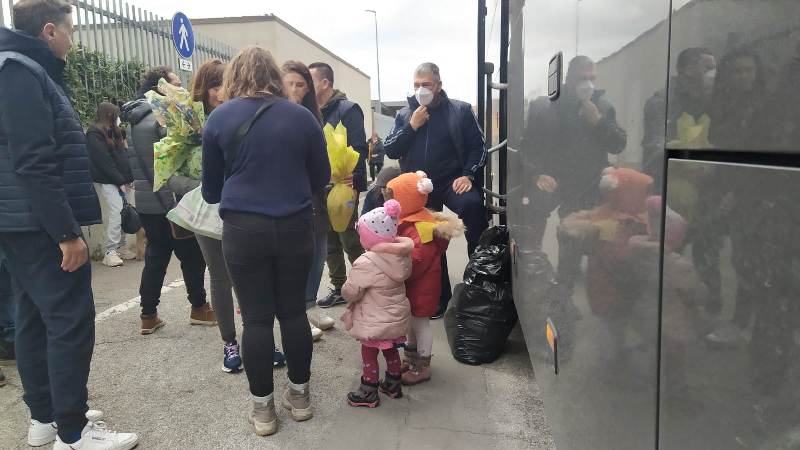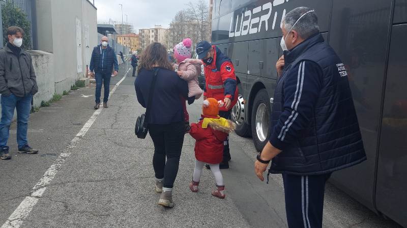 È rientrato alla base il bus che all'andata ha portato aiuti umanitari, al ritorno ha messo in salvo alcune famiglie tra cui donne, un anziano, minori e anche animali domestici. Alcuni saranno ospitati da famiglie, altri nel Cas di Piombino
