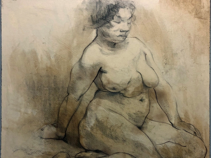 Meini è un artista che si esprime anche nel disegno, con tempere e matite. Dietro di lui si avvertono gli insegnamenti di grandi artisti dal Rinascimento in là, che godevano di una imponente capacità grafica- In testa a tutti c’è l’empolese Pontormo, che non a caso Meini tiene appeso nel suo studio, proprio nella riproduzione di uno splendido disegno, un corpo che si racconta in tutta la bellezza del segno grafico.