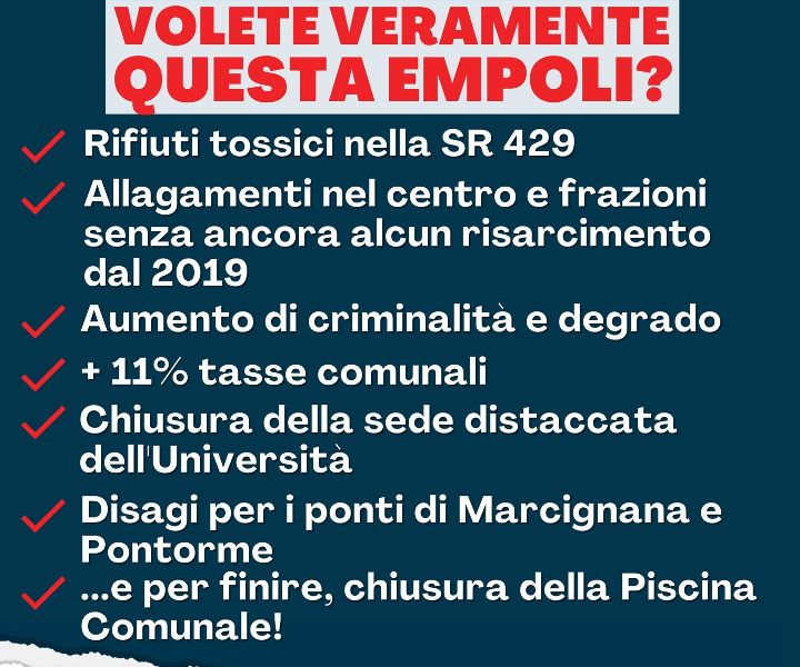 "Volete davvero questa Empoli?". Con questo slogan Fratelli d’Italia Empoli comunica che, sabato 9 Aprile 2022 dalle 10 alle 13, sarà organizzato un gazebo in centro ad Empoli, di fronte al bar Gaggioli e Vezzosi.
