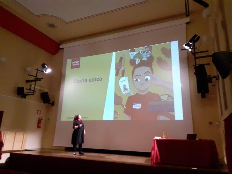 Qual è la "storia unica" che ciascuno porta dentro di sé? L’insieme degli stereotipi che hanno accompagnato la nostra crescita, e che spesso ci precludono ogni possibilità di guardare oltre? È intorno a questi interrogativi che un centinaio di studenti dell’Istituto "F. Enriques" di Castelfiorentino si sono confrontati questa mattina al Ridotto del Teatro del Popolo, nel corso dell’incontro tenuto dalla dott.ssa Carlotta Cubeddu sul "linguaggio razzista".