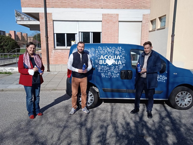 Sono state consegnate questa mattina oltre 300 borracce ad altrettanti alunni di tutte le classi prime elementari del territorio comunale di Pontedera. Ad effettuare materialmente la consegna alle scuole Oltrera, Hack, Saffi - Madonna dei Braccini e Pascoli, assieme a dirigenti scolastici e insegnanti, sono stati gli assessori comunali Francesco Mori (che ha la delega alle politiche educative) e Mattia Belli (delega all'ambiente) assieme a Chiara Lazzaroni, di Acque spa, referente del progetto "Acqua Buona".