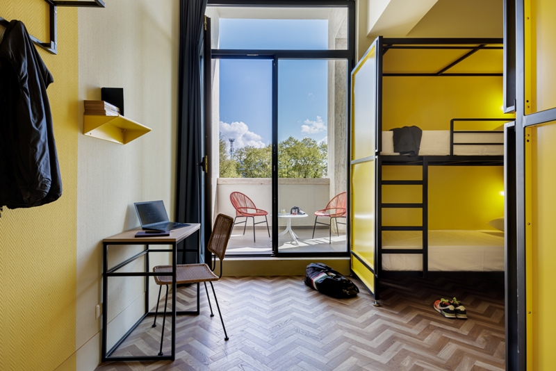 L’ostello “giallo” è cucito su misura per Firenze. Ci sarà uno spazio dedicato al coworking, più di un’area ristoro, una grande cucina condivisa per le cooking class e un cortile per godere l’arrivo della primavera. L’esperienza food & beverage, così come il break time per i professionisti, si sviluppa su tre livelli, come i momenti della giornata, in linea con l'operosità della mattina e il gusto delle serate più vivaci: dallo spazio secret del Basement, inedito luogo fertile per la cultura underground e i cocktail della notte nel cosiddetto “Bargiù”, al “Barmezzo” per tutti i piaceri del giorno, fino a salire verso le nuvole, nel “Barsù”, dove l’aria si fa leggera. Qui, novità assoluta rispetto alle altre sedi italiane, l’area relax sul rooftop con piscina e solarium, con vista panoramica sulla città. L'ambientazione interna veste di gusto retrò: sui muri ci sono le opere dell’artista argentina Valentina Chiappero, per un progetto intitolato “SACADO” - termine spagnolo che significa “estratto dal contesto” - volto a evidenziare l’essenza fluida del futuro, dalla molteplicità di significati, connotato dall’assenza di genere, tempo e spazio definiti.
