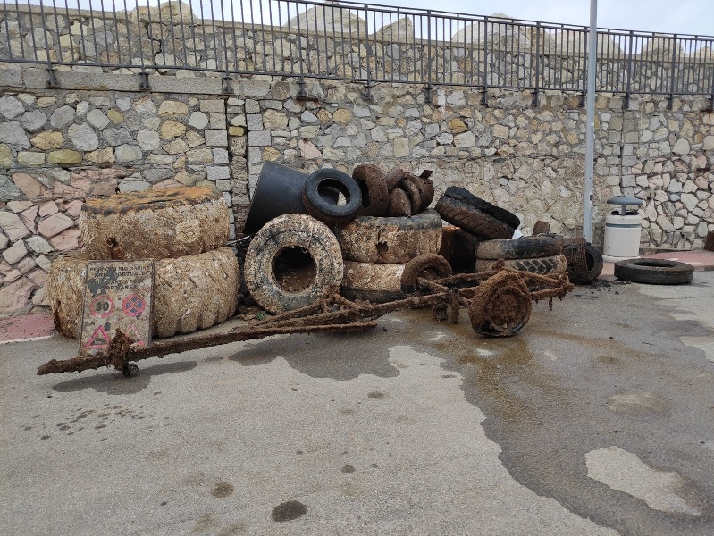 Incredibile il numero e le caratteristiche dei rifiuti trovati e riportati in superficie. Si va dai 2 km di reti da pesca alle 5 tonnellate di pneumatici, un bumper (respingente) da 300 kg, 4 barriere new jersey in calcestruzzo, il cestello di una lavatrice assieme ad altri rifiuti Raee, un estintore, un carrello di 5 metri con pneumatici, batterie al piombo per imbarcazioni.