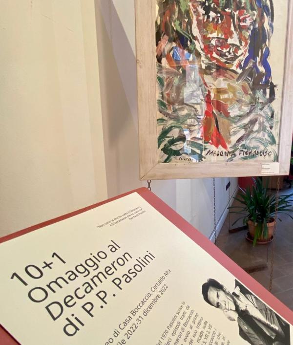 L'esposizione, accolta nella sala d'ingresso della casa-museo, raccoglie opere pittoriche firmate degli artisti italiani e stranieri che, nel 1967, hanno realizzato illustrazioni e dipinti in omaggio all'opera più celebre dello scrittore e poeta trecentesco, il Decameron. Il Comune di Certaldo possiede circa settecento opere di questi artisti e, per il centenario pasoliniano, ha deciso di mettere in mostra, grazie alla collaborazione dell’Ente Nazionale Giovanni Boccaccio, con il patrocinio del Comitato nazionale per il centenario dalla nascita di P.P. Pasolini e della presidenza del Consiglio regionale della Toscana, una selezione di undici dipinti firmati dagli artisti italiani che, nel 1967, si sono lasciati ispirare dalla stesse novelle del Decameron scelte da Pasolini. Fra loro, Carlo Levi, Renzo Vespignani, Tono Zancanaro, Giacomo Manzoni, Silvio Loffredo, Carlo Mattioli, Alberto Manfredi, Paolo Manaresi e Gianni Guidi.