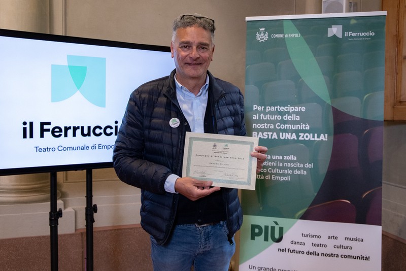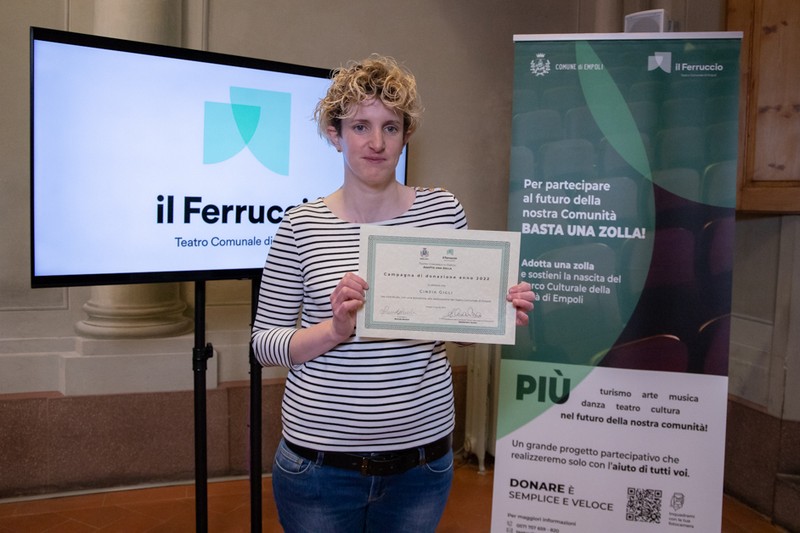 "Sono stata molto contenta di questa iniziativa del Comune di Empoli. Sono una persona che vive di cultura e ben venga questo nuovo stimolo per tutti i cittadini che possono partecipare alla realizzazione di un bene pubblico, sapendo anche che i Comuni devono destinare risorse a settori più sensibili come è il sociale, per esempio, e quindi queste sono manifestazioni da sposare, dove ognuno di noi può mettere una piccola parte. In questa circostanza specifica ho voluto dedicare la donazione alla mia carissima amica scomparsa nel periodo Covid, di Sammontana, con la quale condividevamo momenti di svago, soprattutto cinema e teatro. Lei sarebbe stata felicissima di questa novità e quindi la dedico a lei", ha detto Valentina Vanni.