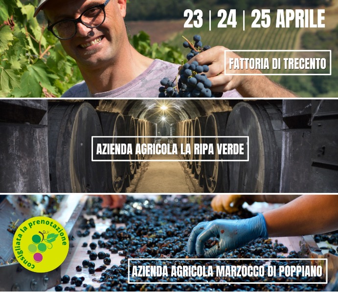 Sabato 23, domenica 24 e lunedì 25 Aprile è il turno delle Aziende Agricole: Marzocco di Poppiano, Fattoria di Trecento e La Ripa Verde.