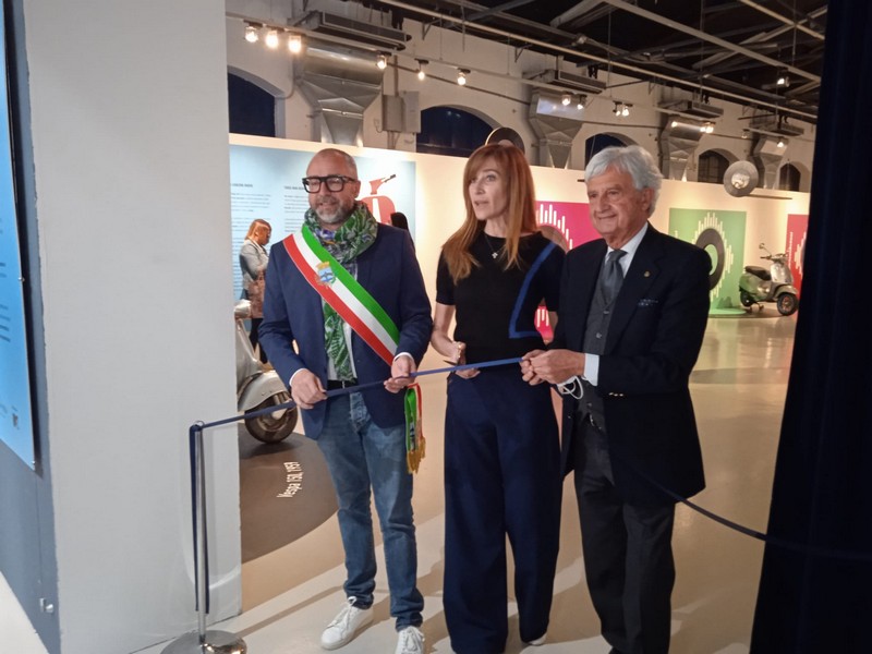 - il sindaco Franconi è con Marika Pisoni ( Piaggio Group ) e Riccardo Costagliola ( Fondazione Piaggio )