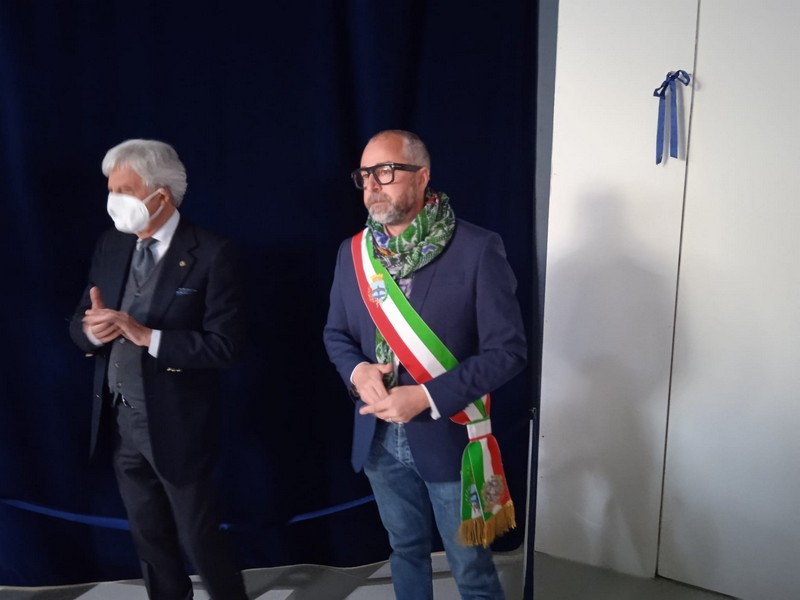 - il sindaco Franconi è con Marika Pisoni ( Piaggio Group ) e Riccardo Costagliola ( Fondazione Piaggio )