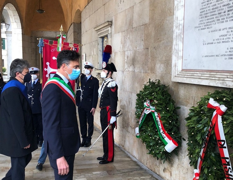 Si sono tenuti in piazza XX settembre gli interventi istituzionali del prefetto Maria Luisa D’Alessandro, del presidente della Provincia, Massimiliano Angori, e del presidente Anpi provinciale Bruno Possenti e del Sindaco di Pisa Michele Conti.