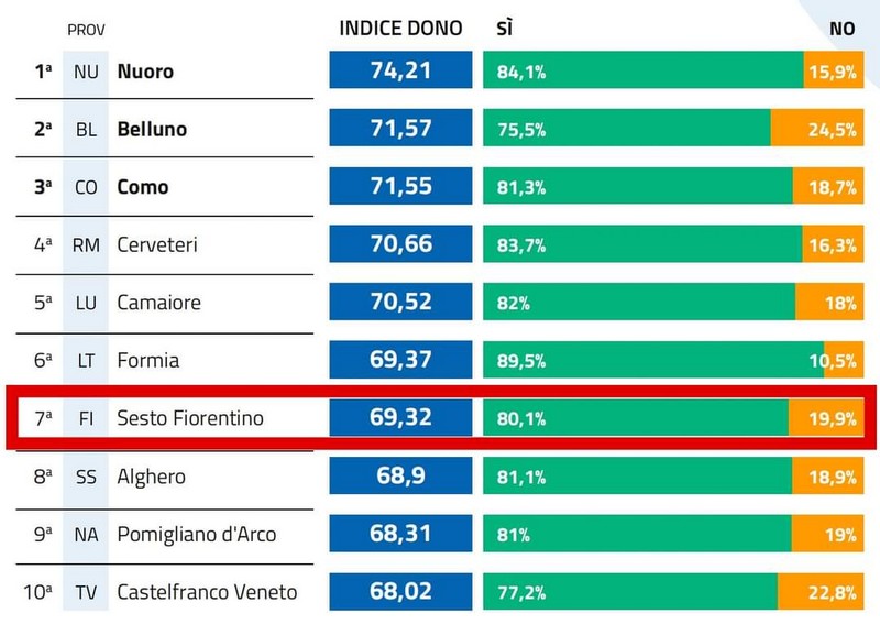 Domenica 24 aprile si è celebrata la Giornata nazionale per la donazione e trapianto di organi e tessuti. Nel rapporto presentato dal Centro Nazionale Trapianti Sesto Fiorentino si è piazzata al settimo posto in Italia tra le città medio grandi (30-100.000 abitanti) come “Indice del dono”, un indicatore che “fotografa” le scelte in materia di donazione degli organi che siamo chiamati a fare al momento del rinnovo della carta di identità.