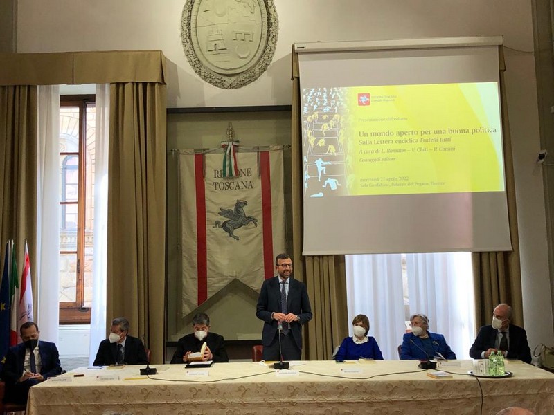 Con la guerra in Ucraina, nel cuore dell’Europa e a poche centinaia di chilometri dal nostro Paese, valori come fratellanza, verità e giustizia devono essere una bussola per orientare le scelte. Ne è convinto il presidente del Consiglio regionale della Toscana che oggi, in sala Gonfalone di palazzo del Pegaso, ha presentato il volume curato da Lucio Romano, Vannino Chiti e Paolo Corsini ‘Un mondo aperto per una buona politica. Sulla lettera enciclica Fratelli tutti’.