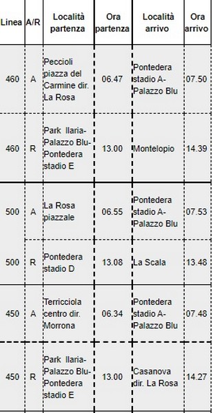 Da lunedì 2 maggio, quindi, rimangono le seguenti corse aggiuntive: