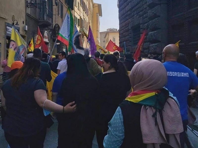Per le strade del centro di Firenze sta sfilando il corteo organizzato dal coordinamento Toscana per il Kurdistan per denunciare l'inasprirsi dell'offensiva militare turca in Kurdistan e contro tutte le guerre. Il corteo, partito da piazza San Firenze, arriverà in Sant'Ambrogio dove è organizzata un'altra iniziativa contro tutte le guerre. Tra i circa cento manifestanti è presente anche Alessandro Orsetti, padre di Lorenzo, il 33enne fiorentino ucciso negli scontri in Siria con l'Isis.