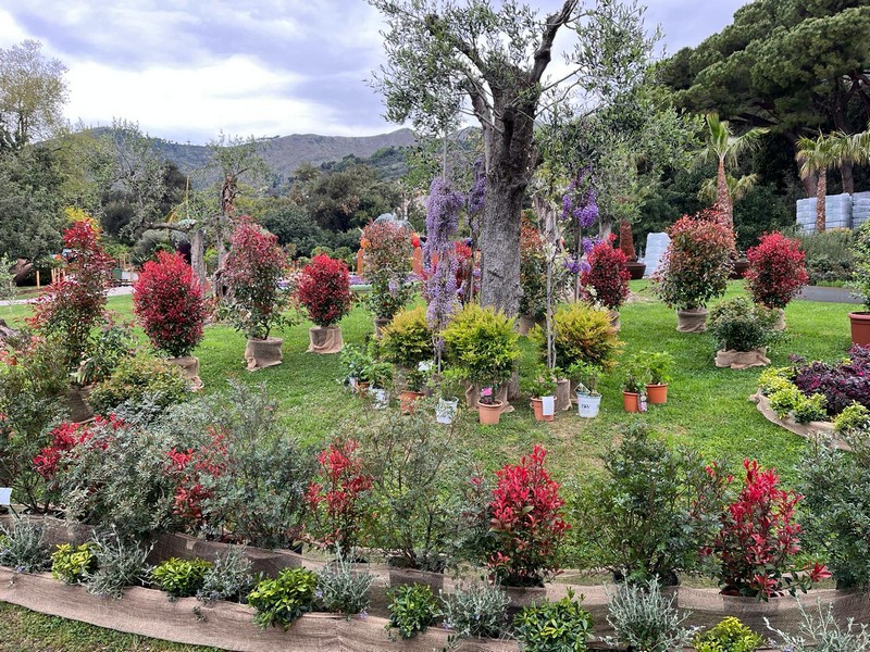 Riguardo all’allestimento dello spazio, nell’area 54 del Parco Serra, «abbiamo cercato di rappresentare il più fedelmente possibile il paesaggio mediterraneo con le nostre varietà sia autoctone che derivanti da nuove ibridazioni - ha spiegato Luca Cinelli -, quali Photinia ‘Volcano’ caratterizzata da una foglia frastagliata, Nandina ‘Moon bay’ a portamento super compatto, Feijoa sellowiana o Acca sellowiana apprezzata per la sua corteccia decorativa e per i suoi frutti». Come ha precisato Sergio Saba, titolare dell’azienda sarda di Olea, Vita Verde di Orosei, che è anche paesaggista specializzato alla scuola di architettura del paesaggio post laurea dell’Università di Torino, «il vialetto sinuoso che attraversa lo spazio è stato contornato da una parte da olivi e dall’altro da cipressini totem, la parte forse più ornamentale con fotinie, glicini e bouganville: partendo dalla base dell’ulivo abbiamo creato un allestimento molto colorato sia per la fioritura che il fogliame. I glicini di 3 metri sono stati appoggiati su un olivo del parco a formare una sorta di tempietto fiorito».