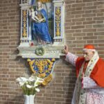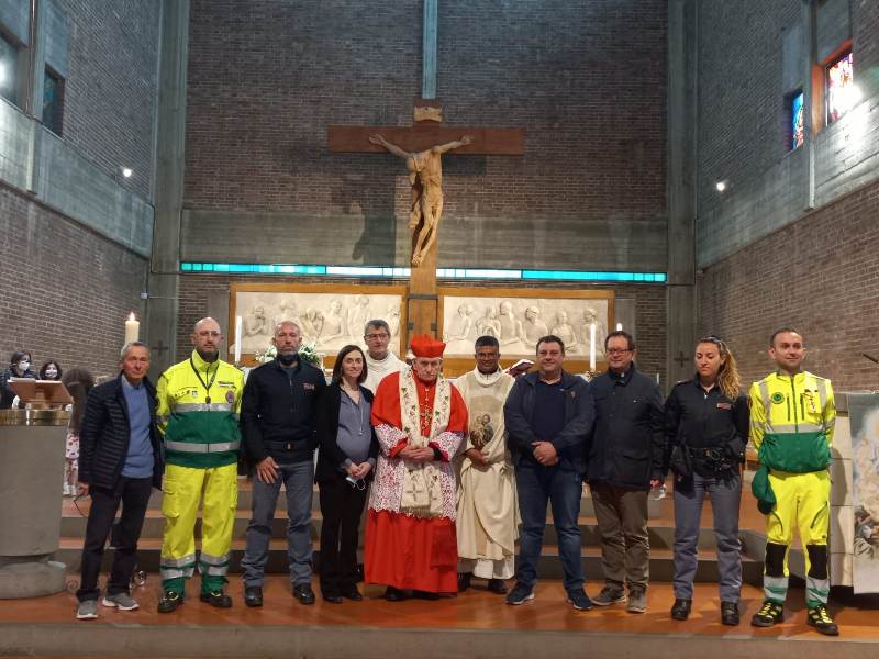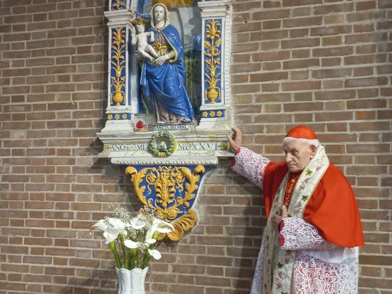 Il Porporato, prima di lasciare la Parrocchia, ha pregato per tutte le vittime del lavoro e per coloro che non hanno una occupazione lavorativa sostato in preghiera ai piedi della grande statua in terracotta raffigurante San Giuseppe mentre si riposa dal lavoro, opera del maestro ceramista e scultore Emilio Mancinelli. Ha poi pregato ai piedi della “Madonna del Fisso” affidandogli le intenzioni dei fedeli in modo particolare per la pace nel mondo e nella martoriata terra di Ucraina. La preziosa immagine mariana in ceramica robbiana fu ritrovata nella prima metà del ‘700 da un contadino il quale arando il campo di proprietà della Famiglia Fissi, urtò con l’aratro oggetto duro ed i buoi non potevano andare avanti. Guardando meglio l’ostacolo, ritrovò una grossa cassa in legno e quando fu aperta trovarono dentro l’immagine della Madonna con tutta la sua edicola sulla quale spiccava l’anno di fattura: 1926, la quale fu poi collocata in via delle Rondini e a seguire nella parrocchia di San Giuseppe Artigiano, per desiderio del primo Parroco Padre Giuseppe Lano, opera d’arte tanto studiata ed amata dallo storico sestese Renzo Luigi Arrighetti.
