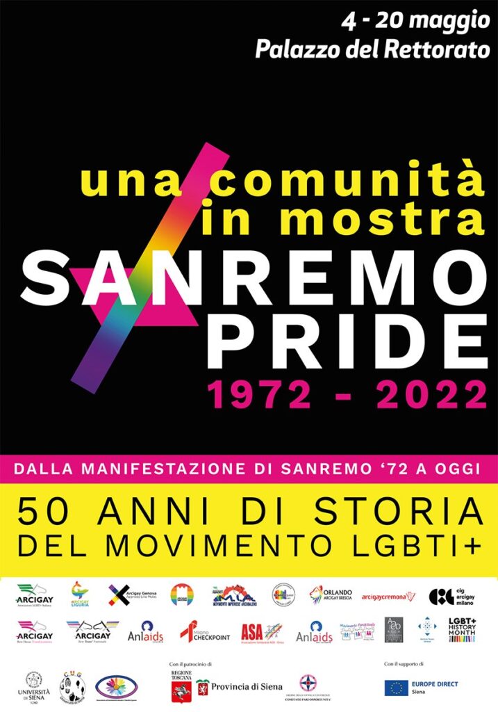 Informazioni sono pubblicate all’indirizzo www.unisi.it/unisilife/eventi/una-comunita-mostra-sanremo-pride-1972-2022