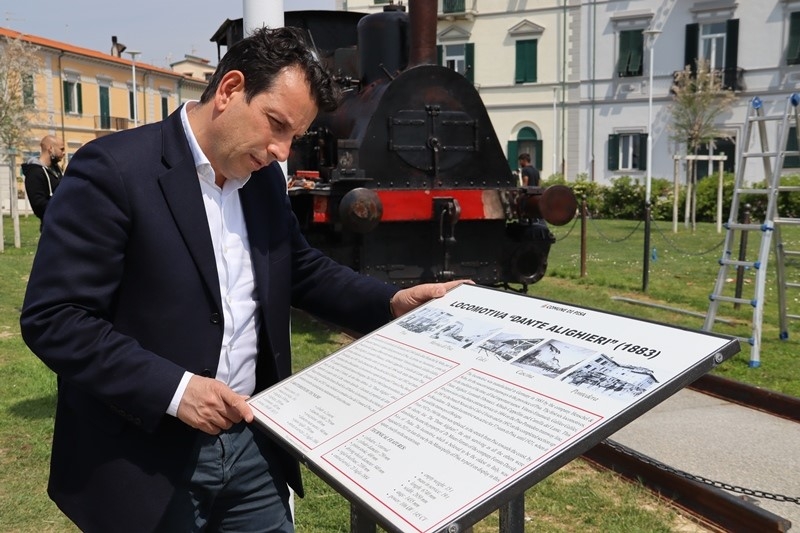 “Come previsto – ha spiegato l’assessore ai lavori pubblici Raffaele Latrofa - è stata completata in questi giorni la manutenzione straordinaria che deve essere fatta ogni anno alla locomotiva esposta agli agenti atmosferici. L'intento di questo tipo di trattamento è quello di mantenere intatta tutta la storia che questa locomotiva porta addosso. Con questo restauro vogliamo conservare la storia della locomotiva, che richiama la storia del nostro territorio, del collegamento tra Pisa e il Litorale e di tutte le persone che utilizzavano il trammino per raggiungere il mare. Non un mezzo qualsiasi riverniciato di nero e rosso come fosse nuovo di zecca, ma una locomotiva vera, con tante colorazioni, che porti i segni della nostra storia, del tempo, così come ad esempio l'usura data dei contatti con i vagoni o dall’utilizzo del calore: la locomotiva “Dante Alighieri” così com’era a inizio ‘900, posizionata sulle verghe originali del treno, rispettando la curvatura del percorso che i binari facevano davvero all'interno della piazza di Marina”.